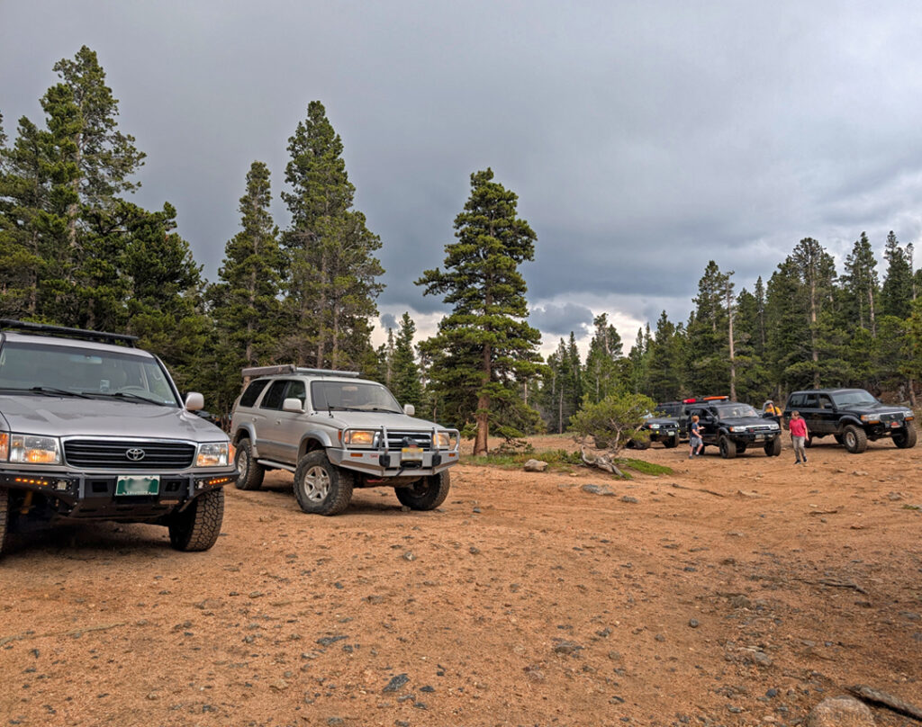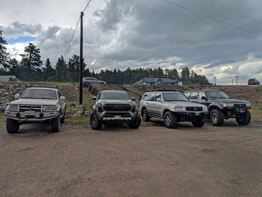 With a total of 12 rigs, we meet at the trial head and aired down. It’s been ages since I ran Slaughterhouse Gulch but still just as fun as I remember with some great drives through the forest. Nothing to challenging but enough to have fun with. The cloud cover made for a perfect mountain afternoon and friends from the club even better. After, some of us made a short drive into Conifer and stopped at the Snow Pack Taproom and Pizzeria for some refreshments and Pizza. I left before the food arrived, but enjoyed the company. A short drive down the hill and I was puling into my fancy parking spot downtown. Not to long after, hanging out with more friends at the local watering hole before finally calling it a night. Sublime days of Summer indeed.
