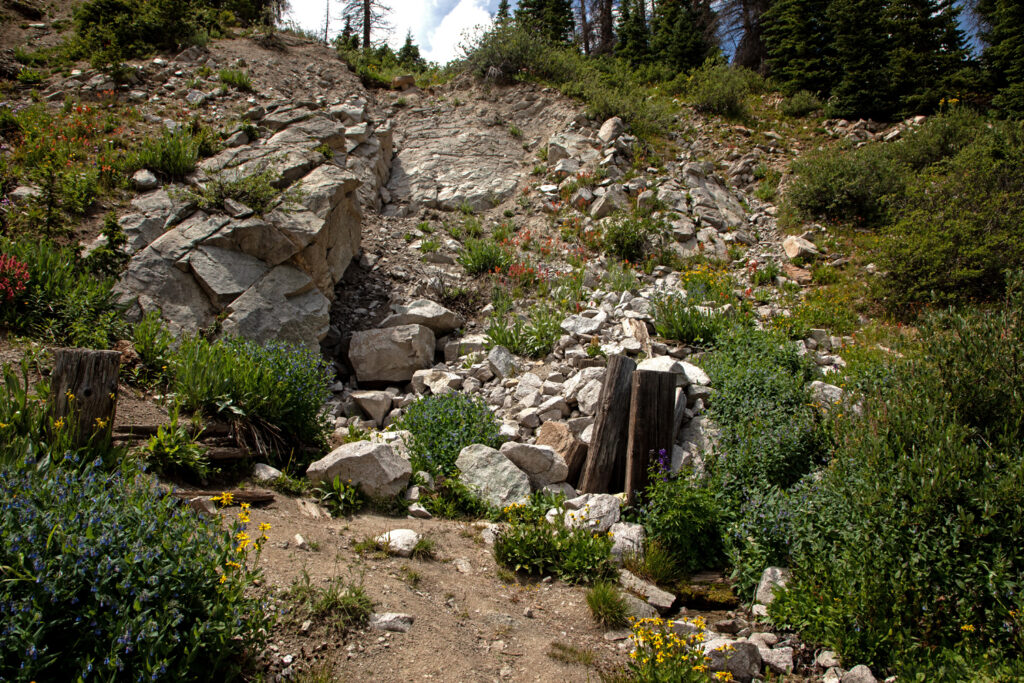Work on the tunnel started in in 1879. At one point almost 10,000 workers were on site. The first train rolled through the Alpine Tunnel after construction was completed in 1882. At the time, I was the highest railroad tunnel in North America, crossing Under the Continental Divide at 11,523 FT. The tunnel is 1,772FT in length and used over 500 board feet of California Redwood to help stabilize the interior.